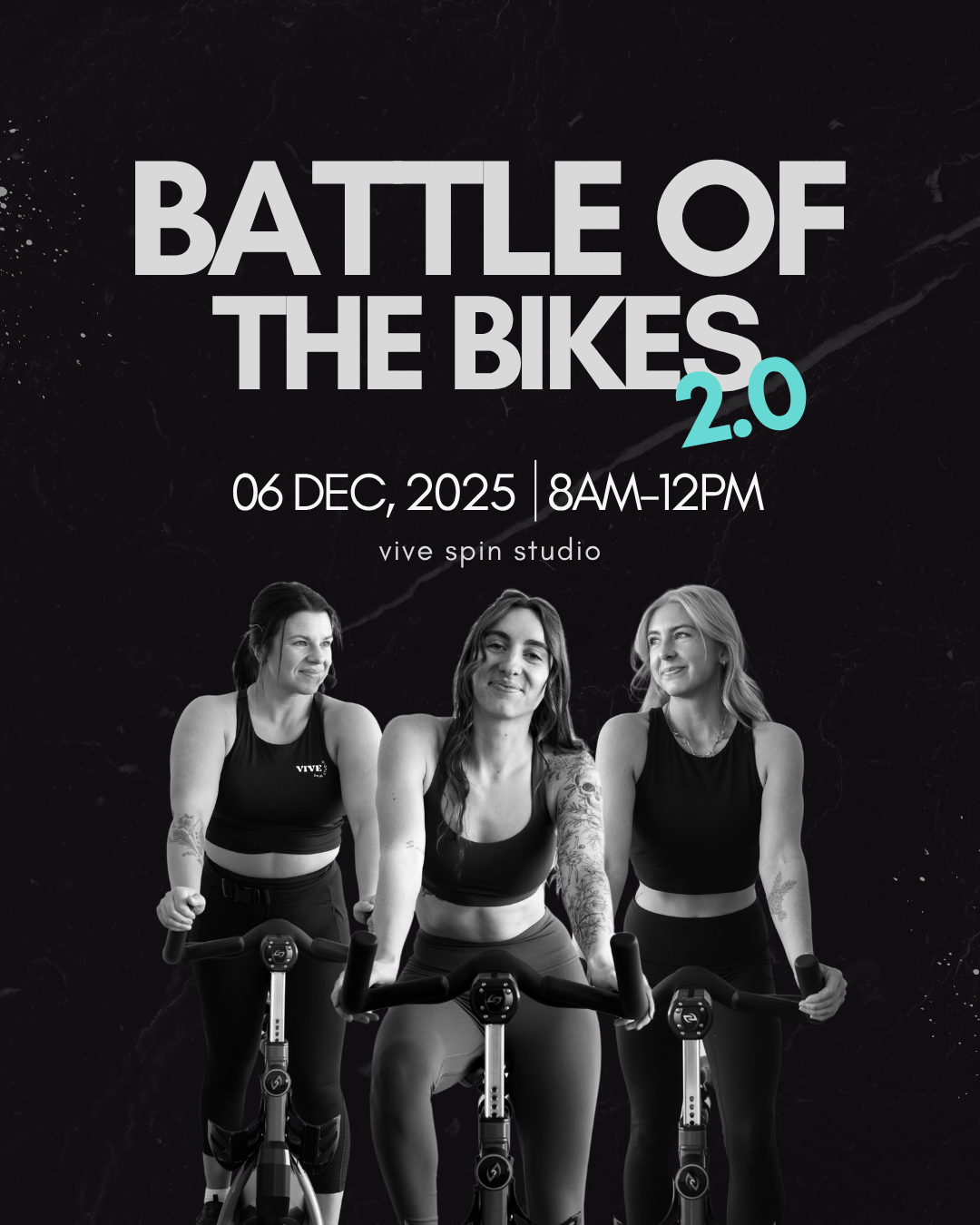 Join us as we kick off VIVEβs fourth birthday with our biggest event of the year β Battle of the Bikes! Think loud playlists, electric energy, and a room full of riders ready to push limits and have fun. Itβs the perfect way to celebrate four years of riding strong together.
